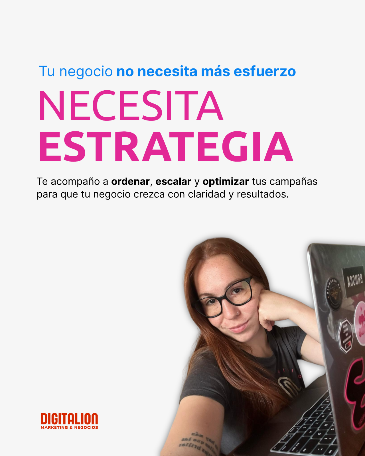 Acompañamiento personalizado durante 1 mes para crear, analizar y optimizar tus campañas con una estrategia clara. Incluye soporte por WhatsApp entre sesiones para ayudarte a tomar decisiones con confianza.